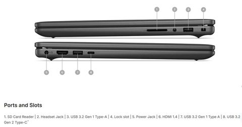 Kết nối đa dạng: 2× USB‑A 3.2, 1× USB‑C 3.2 (data/video), HDMI 1.4, SD card, jack 3.5 mm.